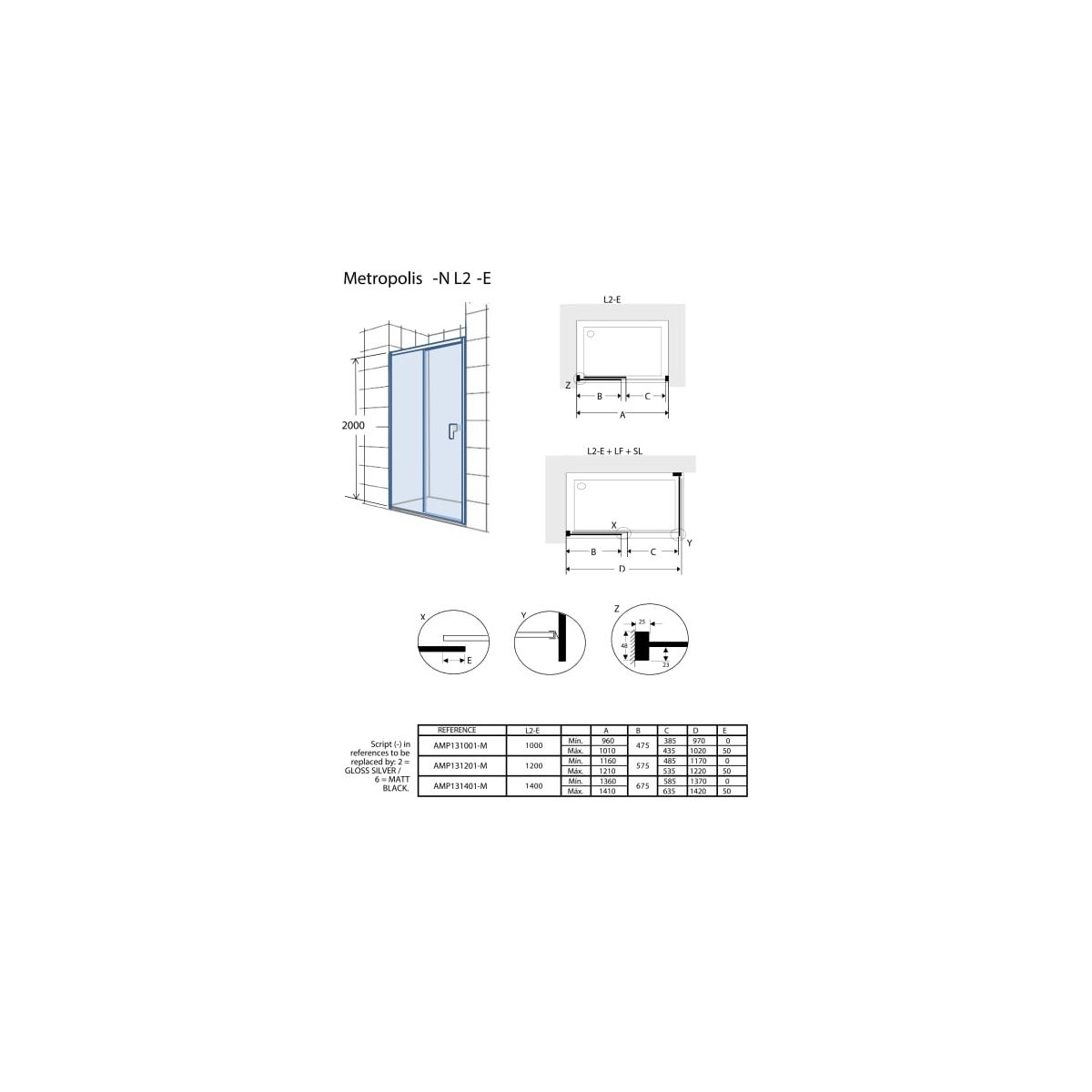Kann in einer Nische montiert oder mit einer Seitenwand kombiniert werden. Um die Schiebetür mit der Wand zu verbinden, muss separat das Montageset AMP0420002 (Chrom) ausgewählt werden.