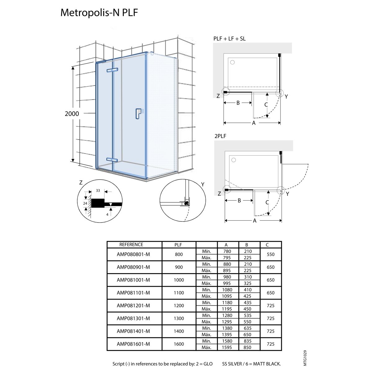 Roca Metropolis-N Duschtüren 110 cm aufklappbar schwarz Matte/durchsichtiges Glas AMP0811016M