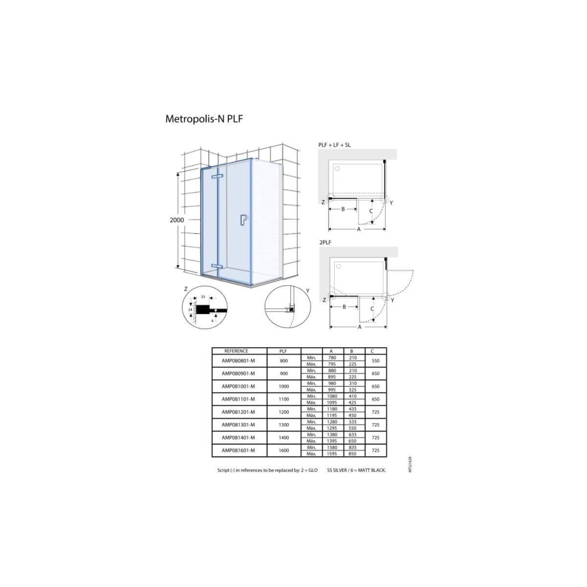 - Kombinierbar mit Türen mit festem Feld oder Seitenwand Metropolis-N