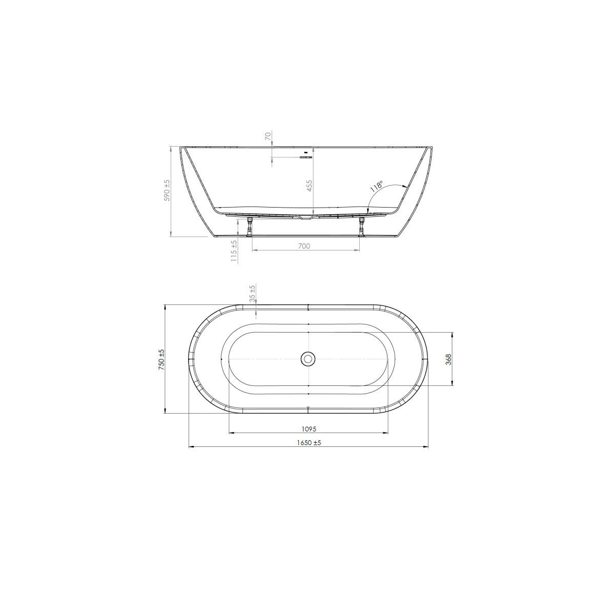 - Außenmaße (mm): 1650 x 750