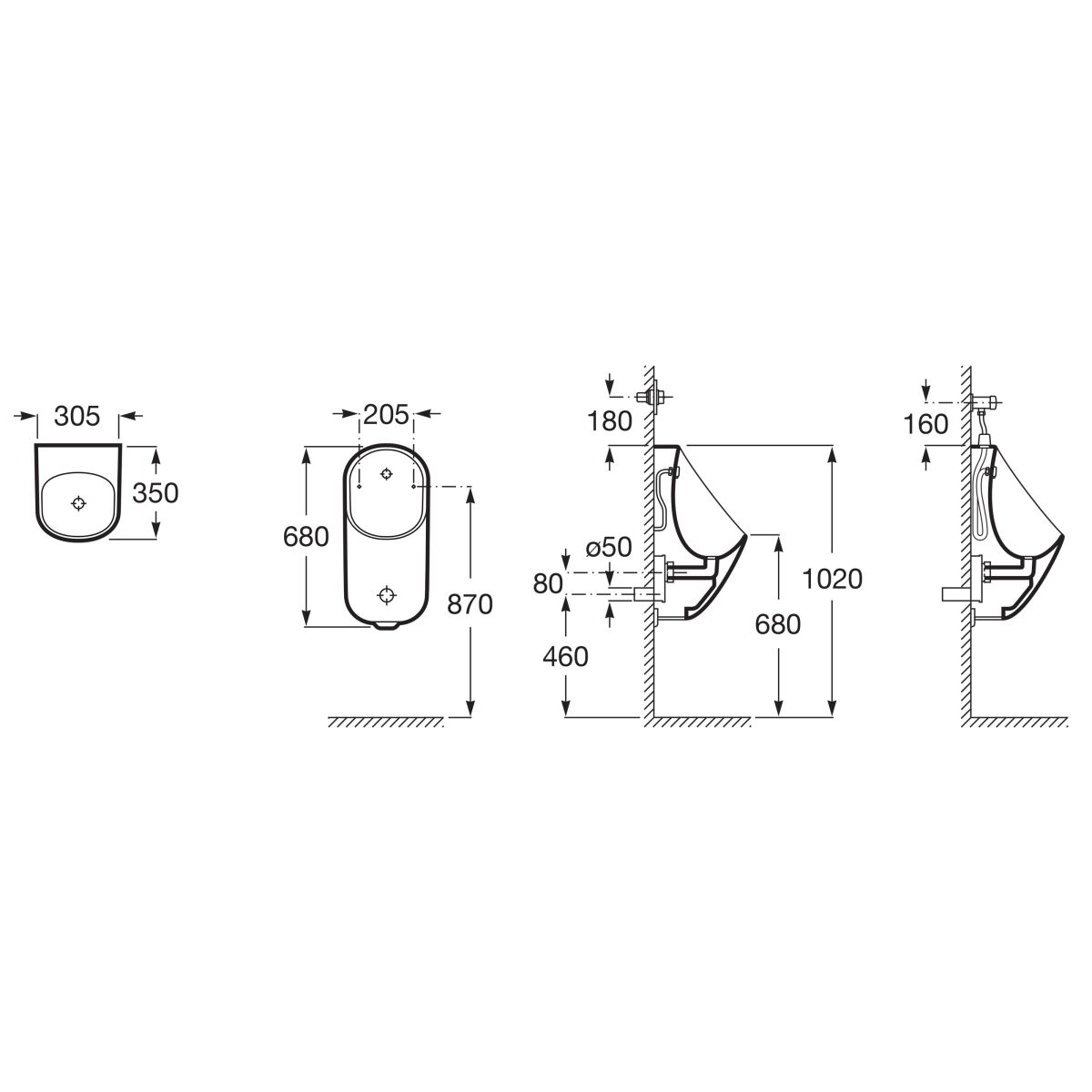 - Im Lieferumfang enthalten: Wandmontageset, Versorgungsanschluss mit Wasserschlauch, Siphon, vandalismussichere Abflussabdeckung, Siphon