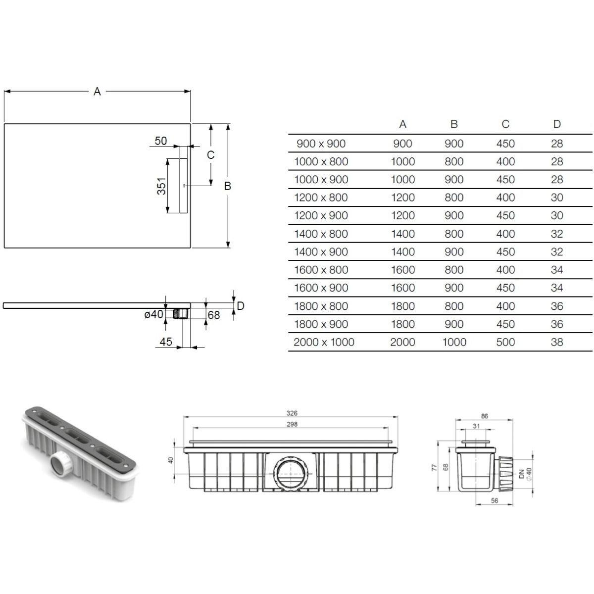 - Höhe des Siphons vom Boden der Duschwanne: 68 mm
