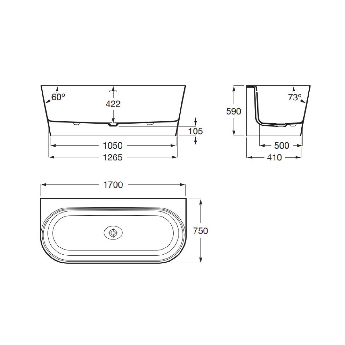 Roca Raina Wandmontierte Badewanne 170x75 cm oval weiß A248668000