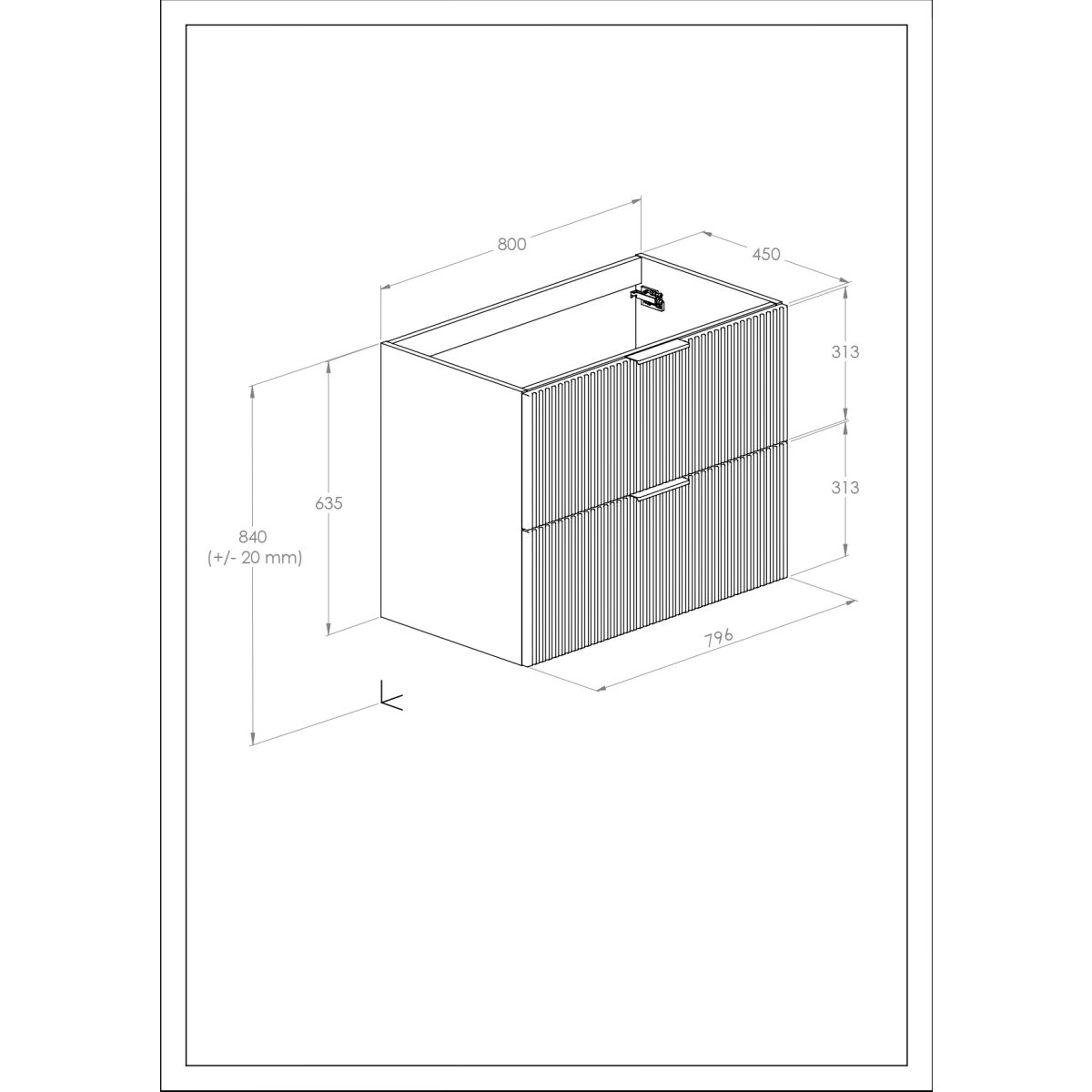 - Sockel/Verbindung von Türen und Schubladen: 2 Schubladen