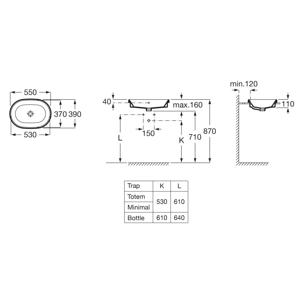 Roca Round Waschbecken 55x39 cm oval Einbauwaschbecken weiß A3270Y5S00