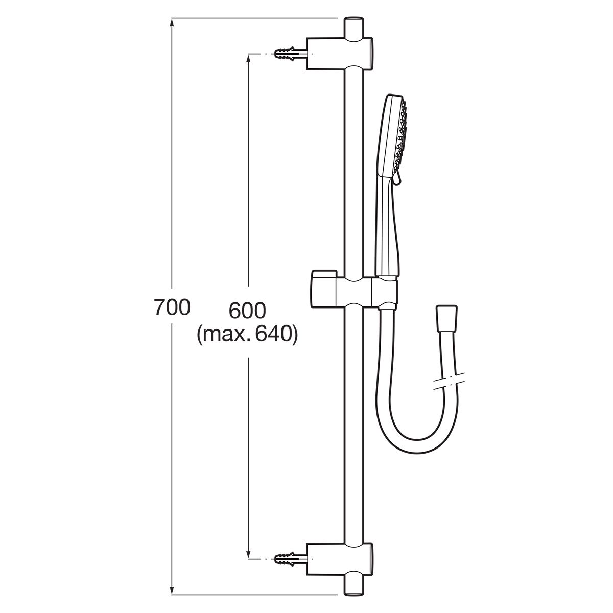 - Inbegriffen: Duschkopf, Duschschlauch, Duschstange