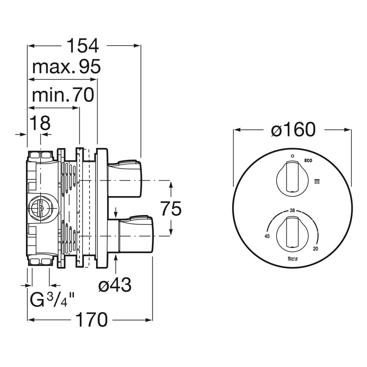Roca T-1000 Duschbatterie Unterputz mit Thermostat chrom A5A2E09C00