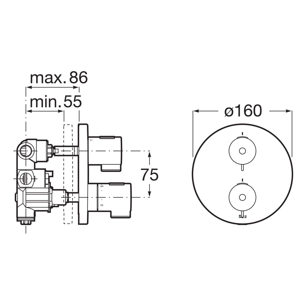 Roca T-500 Badewannen- und Duscharmatur Unterputz mit Thermostat chrom A5A2K18C00