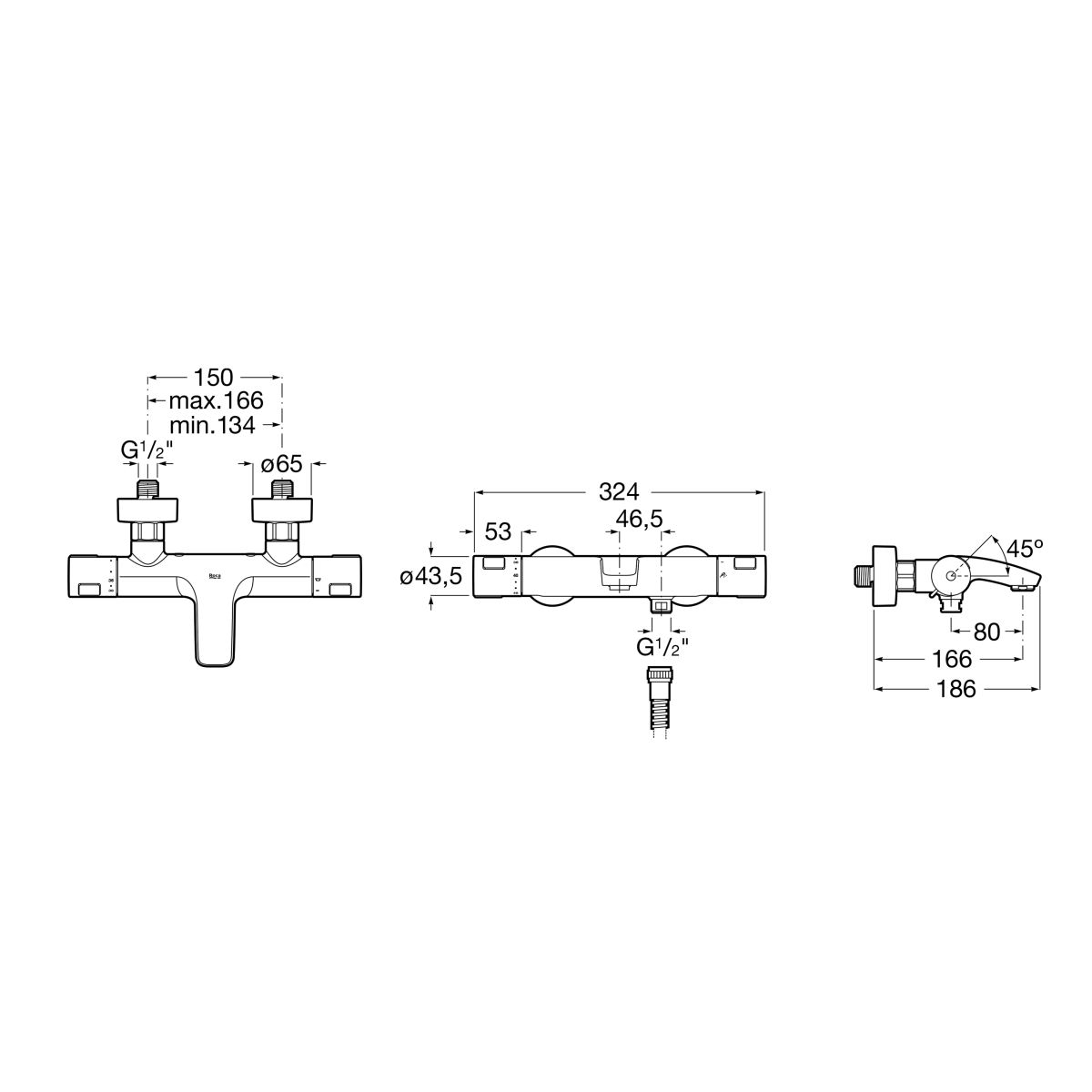 Roca T-500 Badewannen- und Duscharmatur Wandmontage mit Thermostat chrom A5A1E18C00
