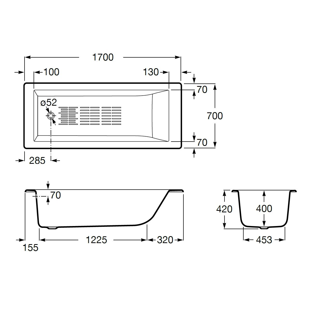 Roca Tampa Rechteckige Badewanne 170x70 cm weiß A234150000
