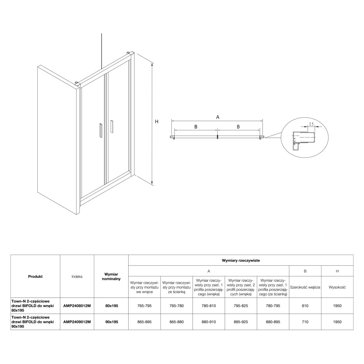 Roca Town-N Duschtüren 90 cm faltbar chrom Glanz/durchsichtiges Glas AMP2409012M