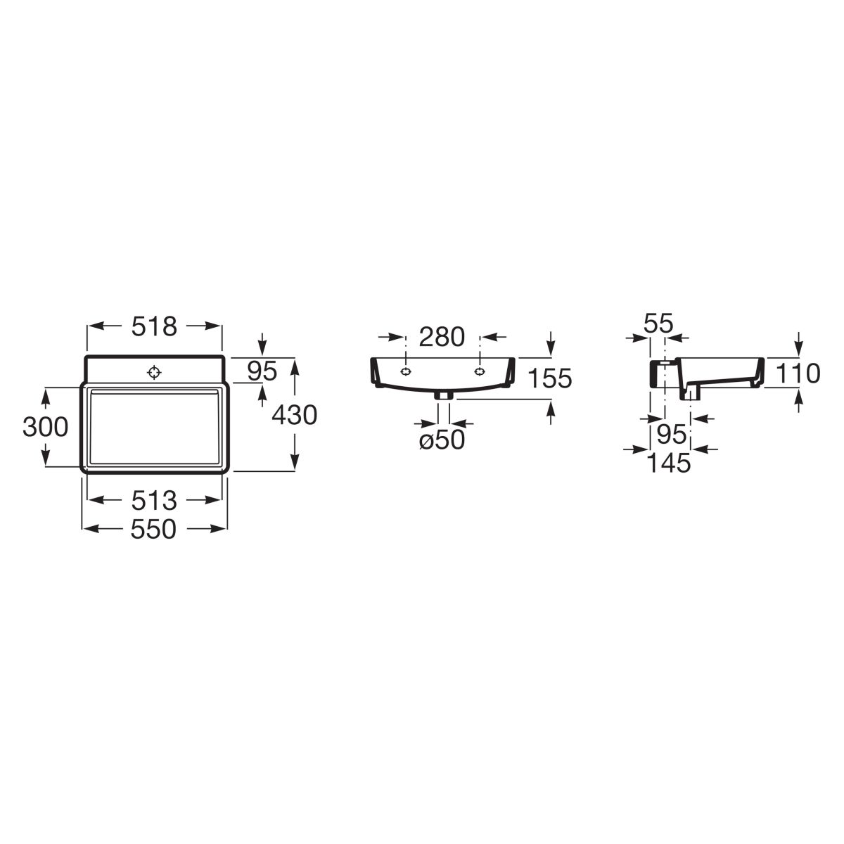 Roca Tura Waschbecken 55x43 cm rechteckig Aufsatzwaschbecken weiß A327693000