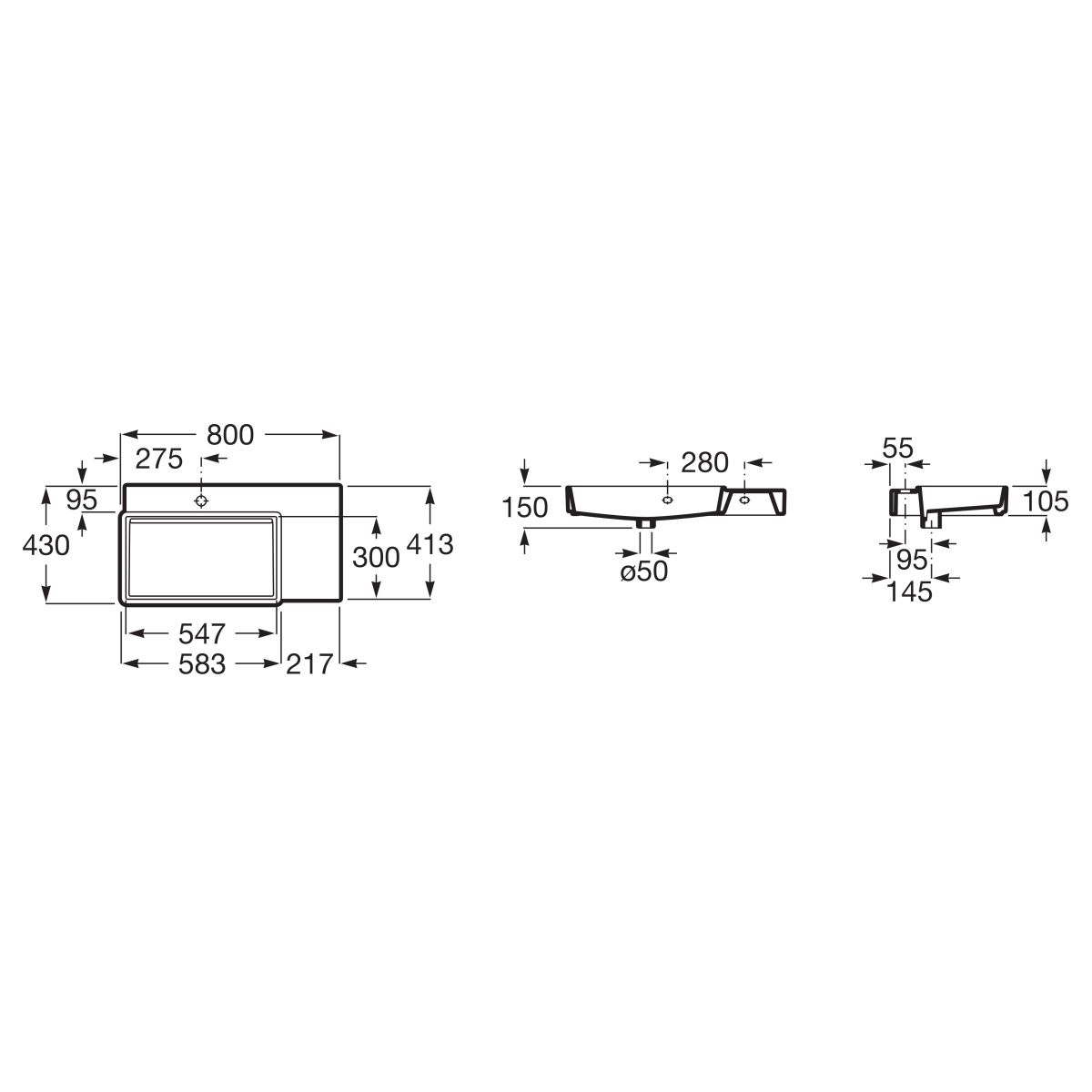 - Waschbecken mit der Möglichkeit der Montage auf einer Arbeitsplatte.