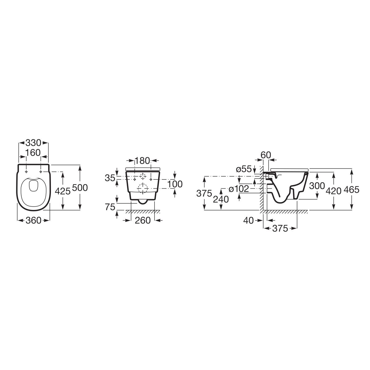 Roca Tura WC-Becken hängend Spülrandlos weiß Glanz A346697S00