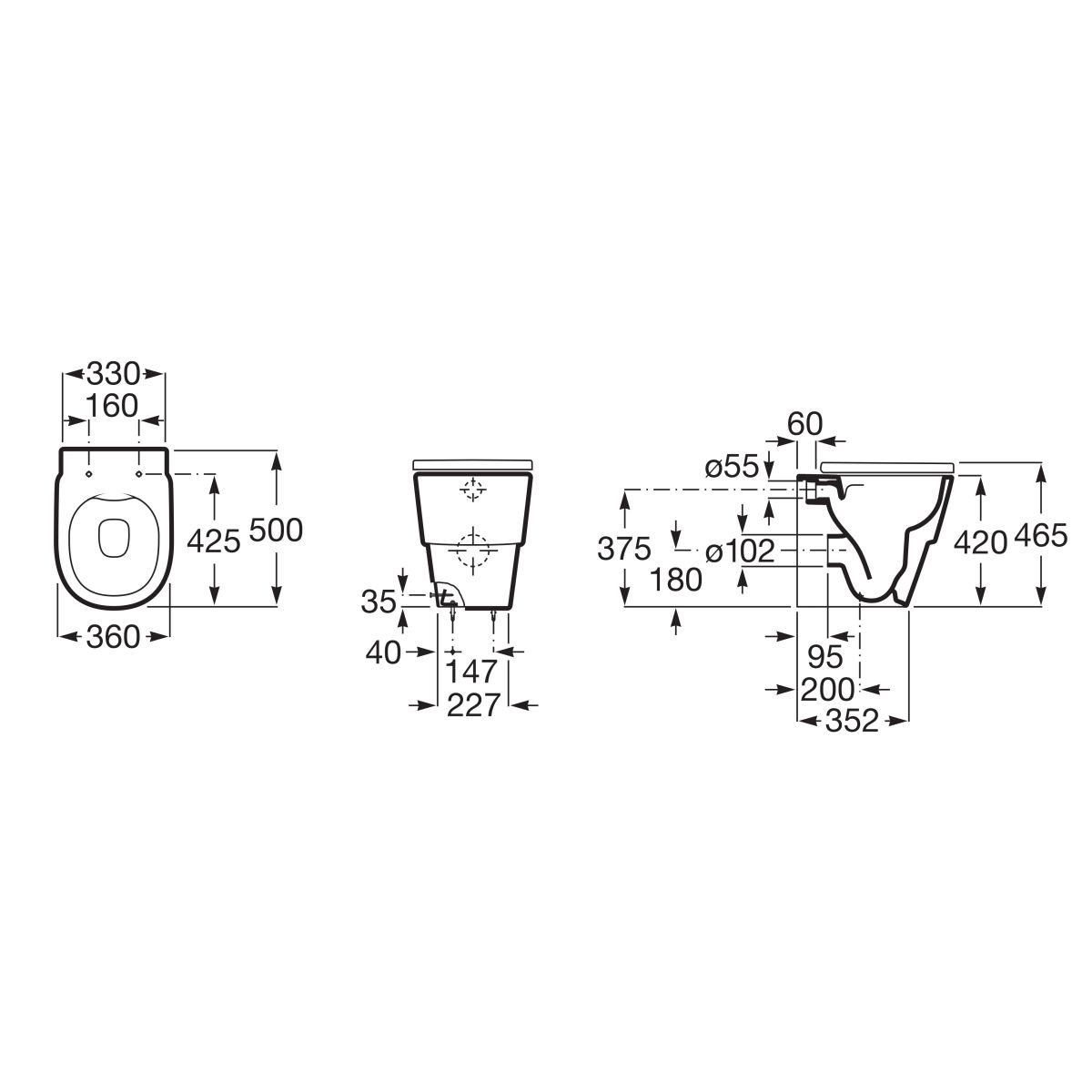 Roca Tura WC-Becken stehend Spülrandlos weiß Glanz A347697000