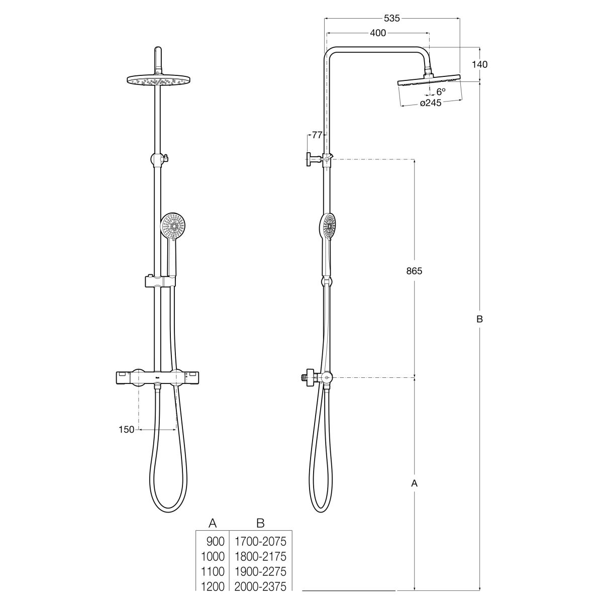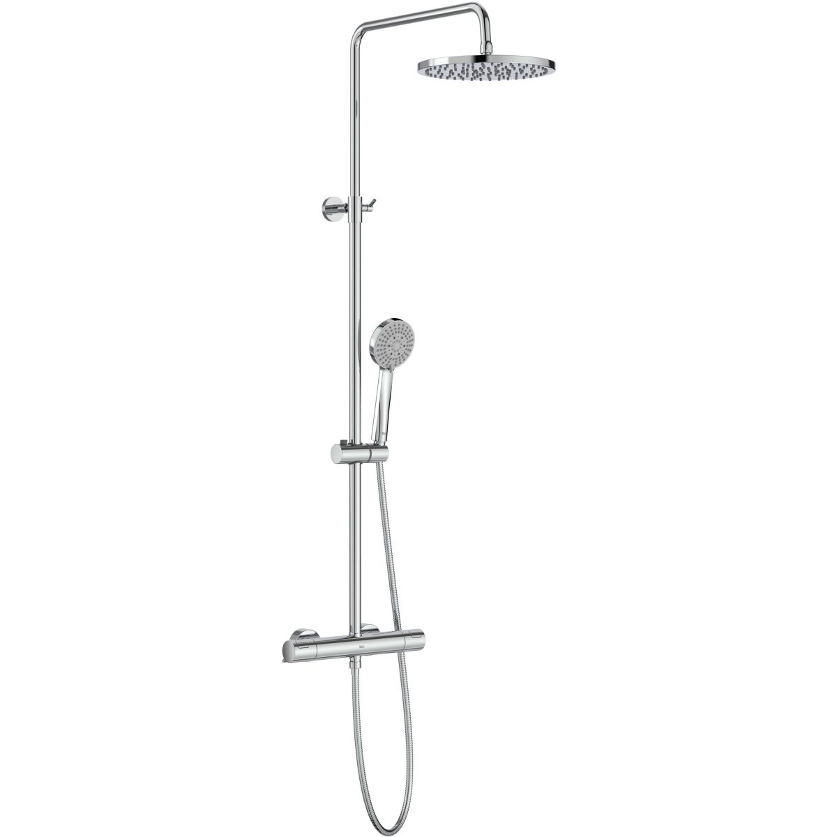 - Im Lieferumfang enthalten: ABS-Regenduschkopf 20 cm, Handbrause 100/1F, Brauseschlauch 1,7 m, Edelstahlstange, Thermostat-Brausebatterie T-500