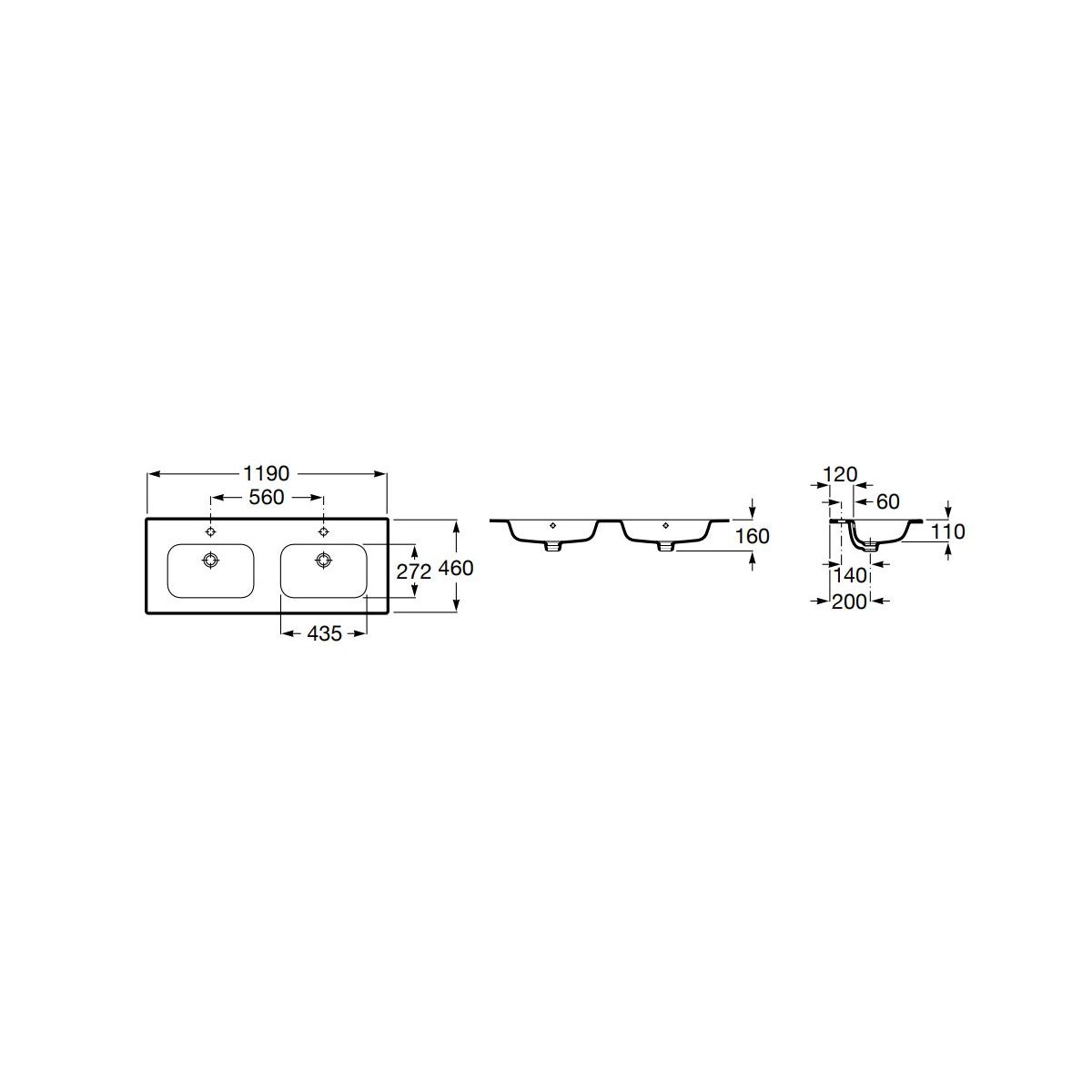 Roca Victoria-N Waschbecken 120x46 cm rechteckig Möbel weiß A32799A000