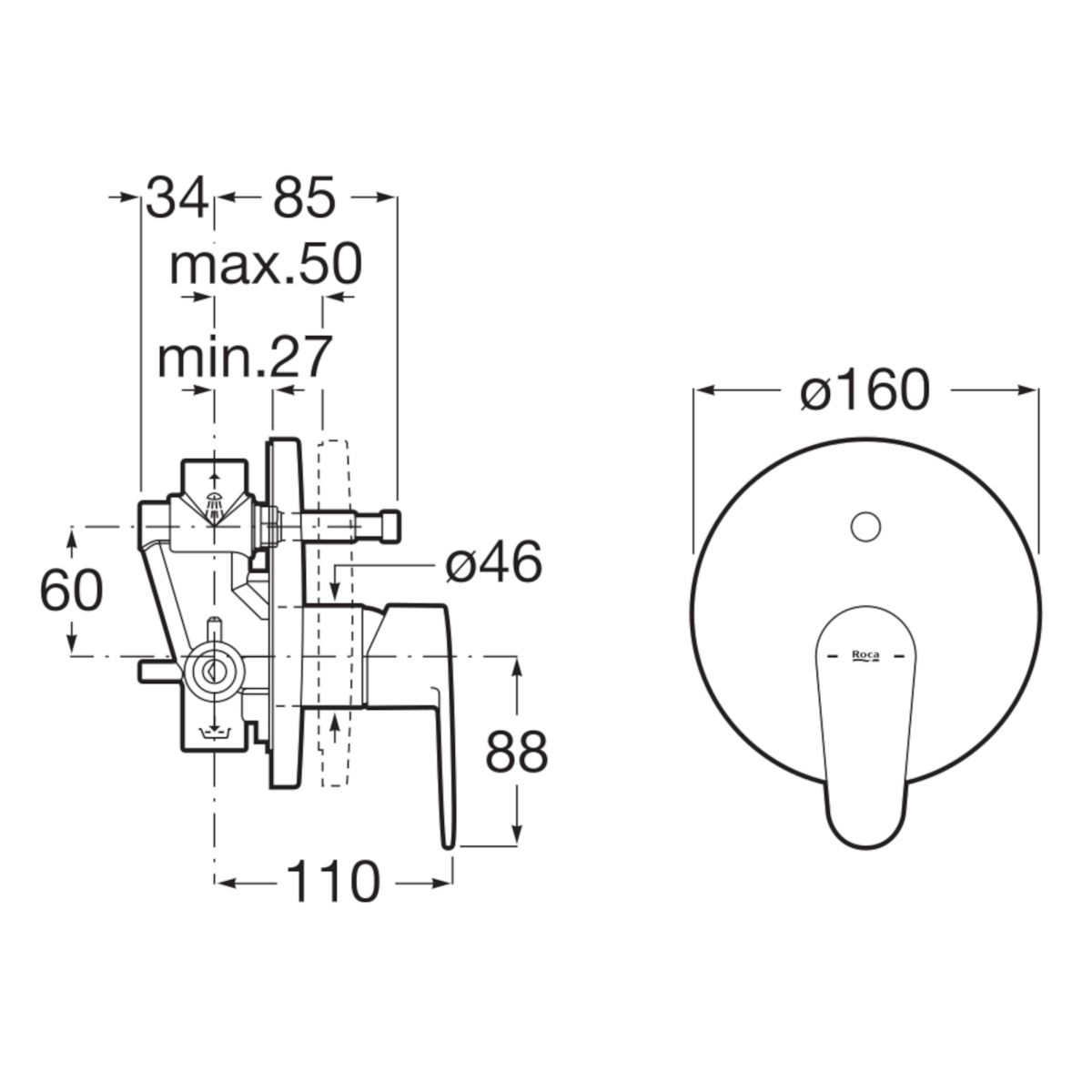 Roca Victoria Plus Badewannen- und Duscharmatur Unterputz chrom A5A064FC00