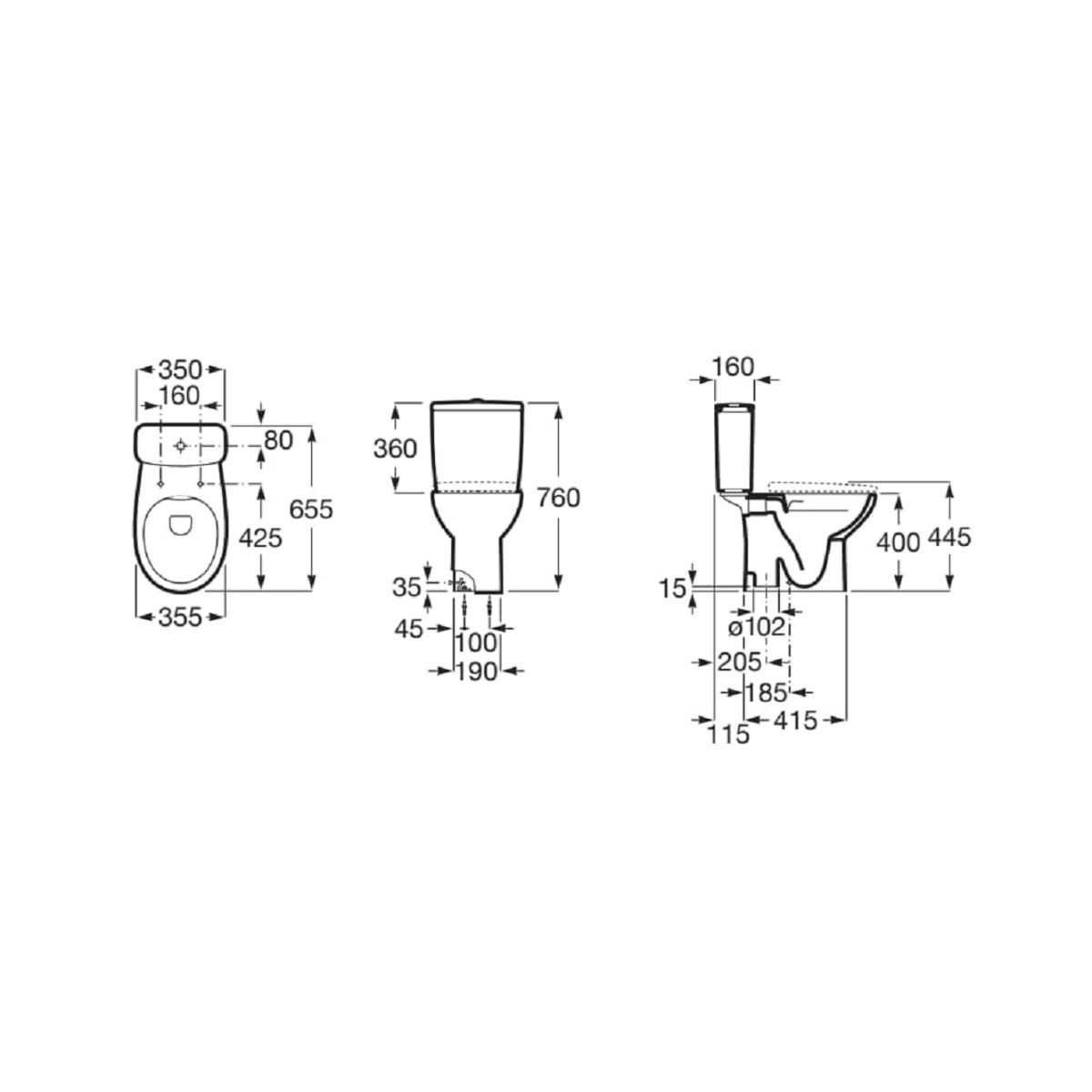 - Randloses WC-Becken mit senkrechtem Abfluss, geeignet für 4/2-, 4,5/3- und 6/3-Liter-Spülungen.