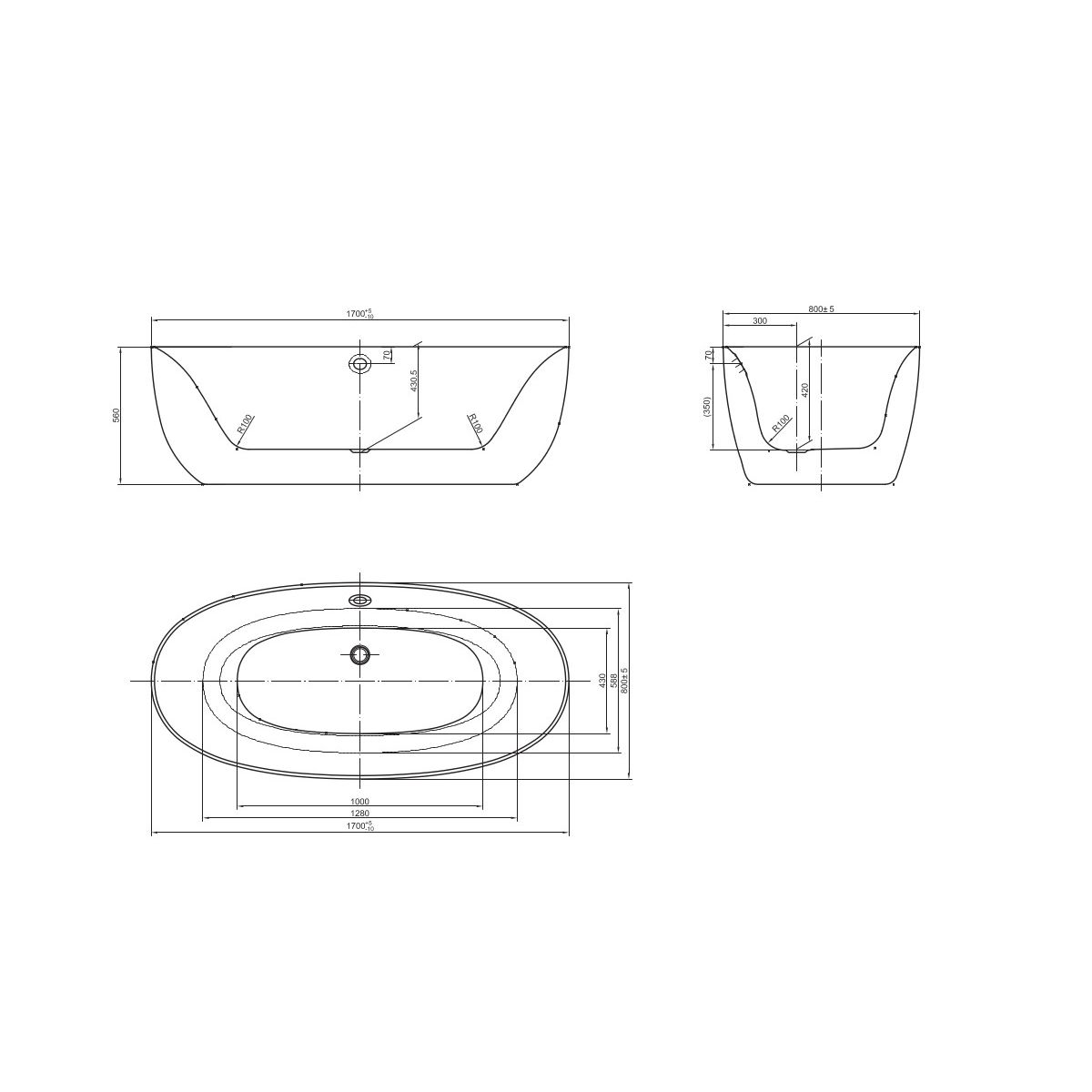 Roca Virginia Freistehende Badewanne 170x80 cm oval weiß A24T438000