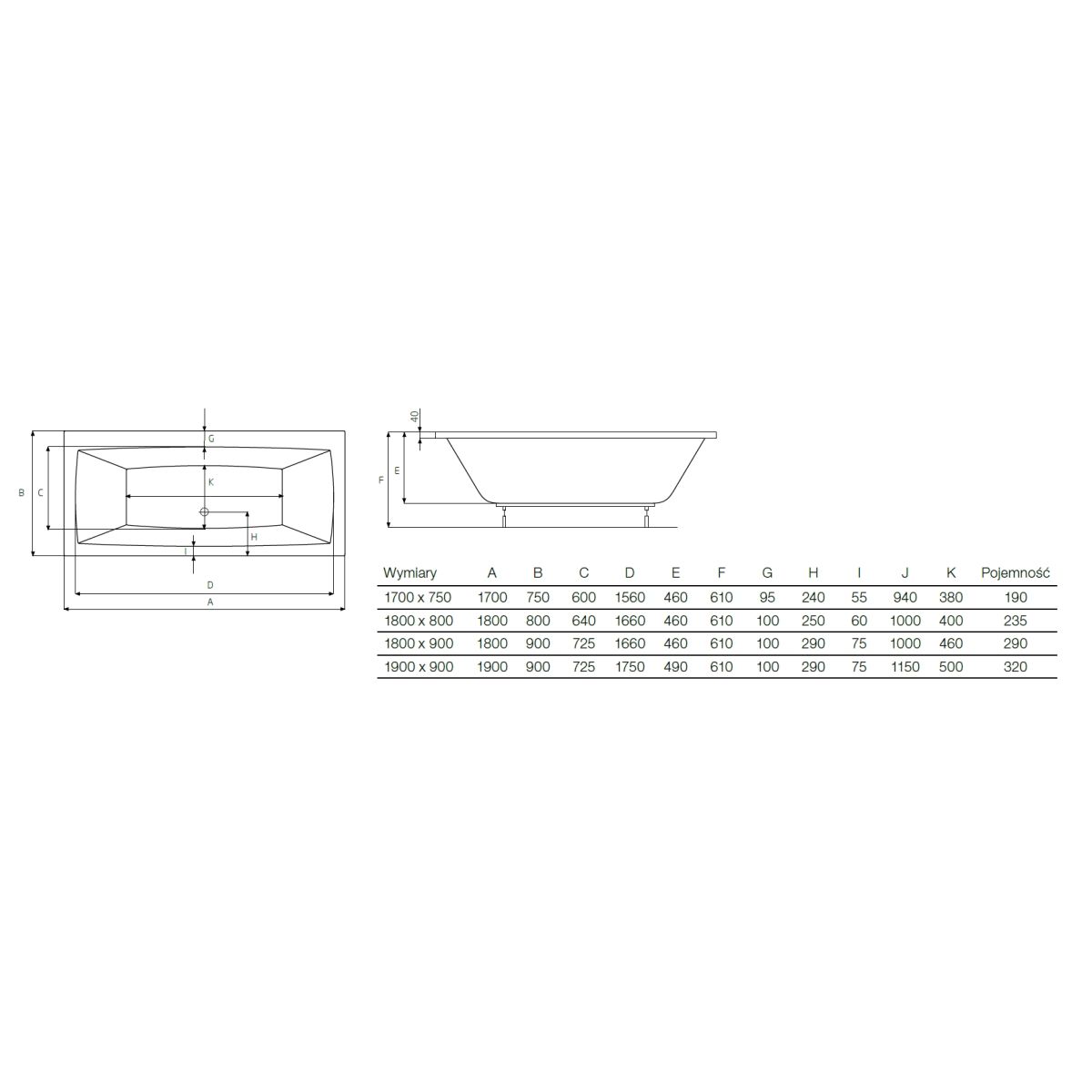 Roca Vita Rechteckige Badewanne 190x90 cm weiß A24T090000