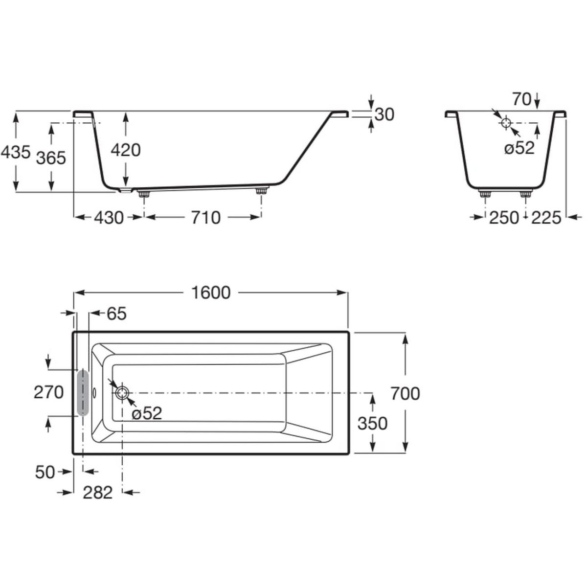 Roca Vythos Rechteckige Badewanne 160x70 cm weiß A248549000