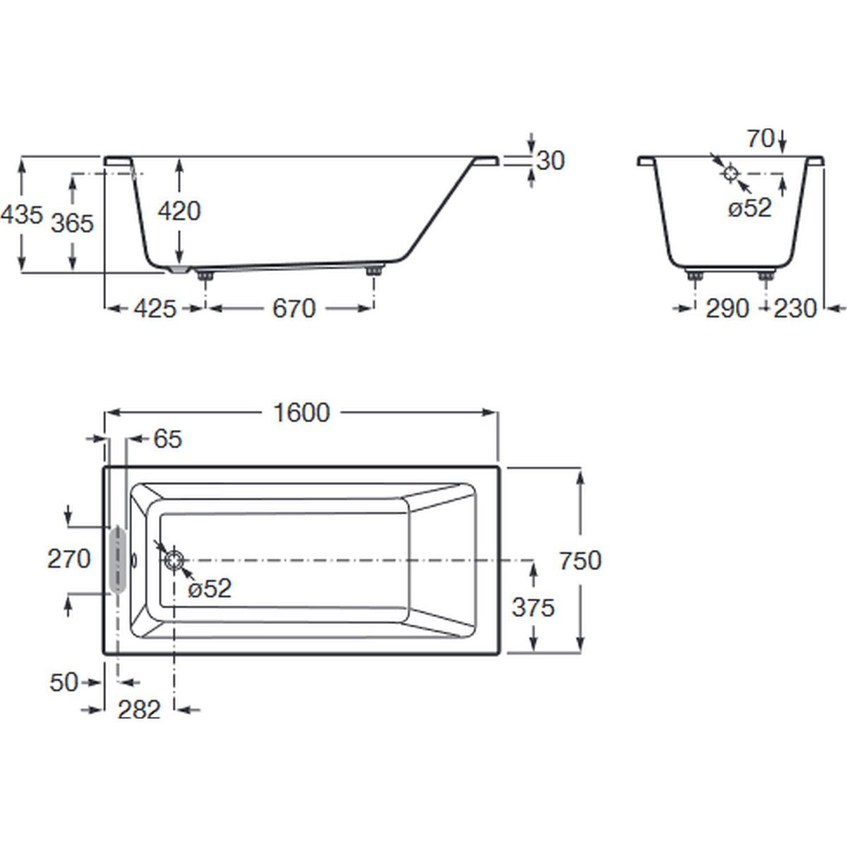 Roca Vythos Rechteckige Badewanne 160x75 cm weiß A248551000