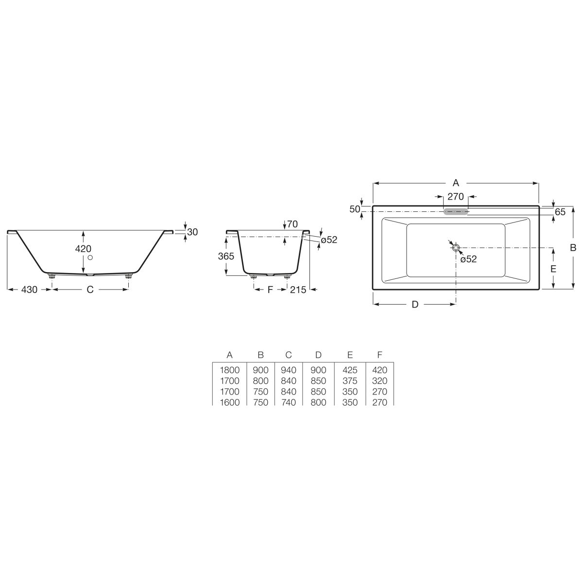 Roca Vythos Rechteckige Badewanne 160x75 cm weiß A248553000