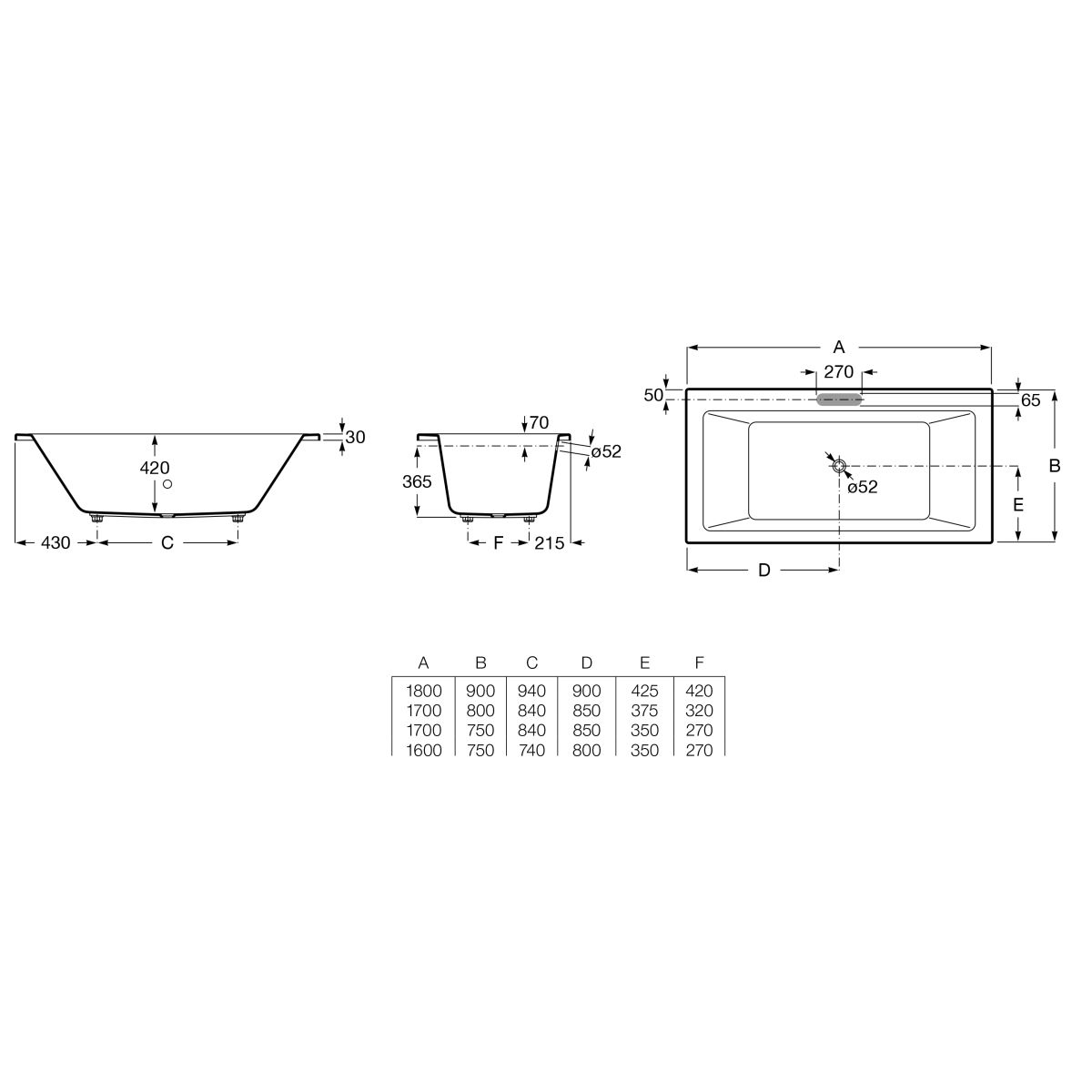 Roca Vythos Rechteckige Badewanne 180x90 cm weiß A248556000