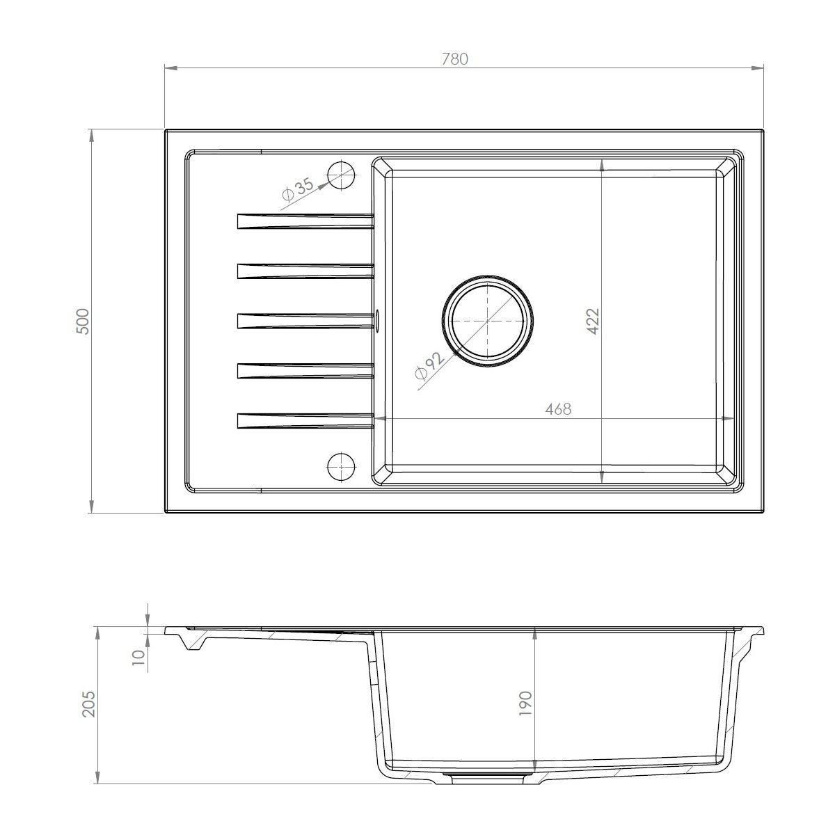 Ein automatischer Siphon mit einem formschönen Druckknopf ermöglicht eine bequeme Steuerung des Abflusses, ohne die Hände ins Wasser tauchen zu müssen, was den Bedienkomfort erheblich erhöht. Abgerundet wird das Ganze durch ein schönes, universelles Design, das sich sowohl in moderne als auch in klassische Einrichtungsstile perfekt einfügt. Die Ausführung aus strapazierfähigem Material garantiert Kratzfestigkeit, Beständigkeit gegen hohe Temperaturen und intensive Nutzung, sodass die Spüle über viele Jahre hinweg in hervorragendem Zustand bleibt.