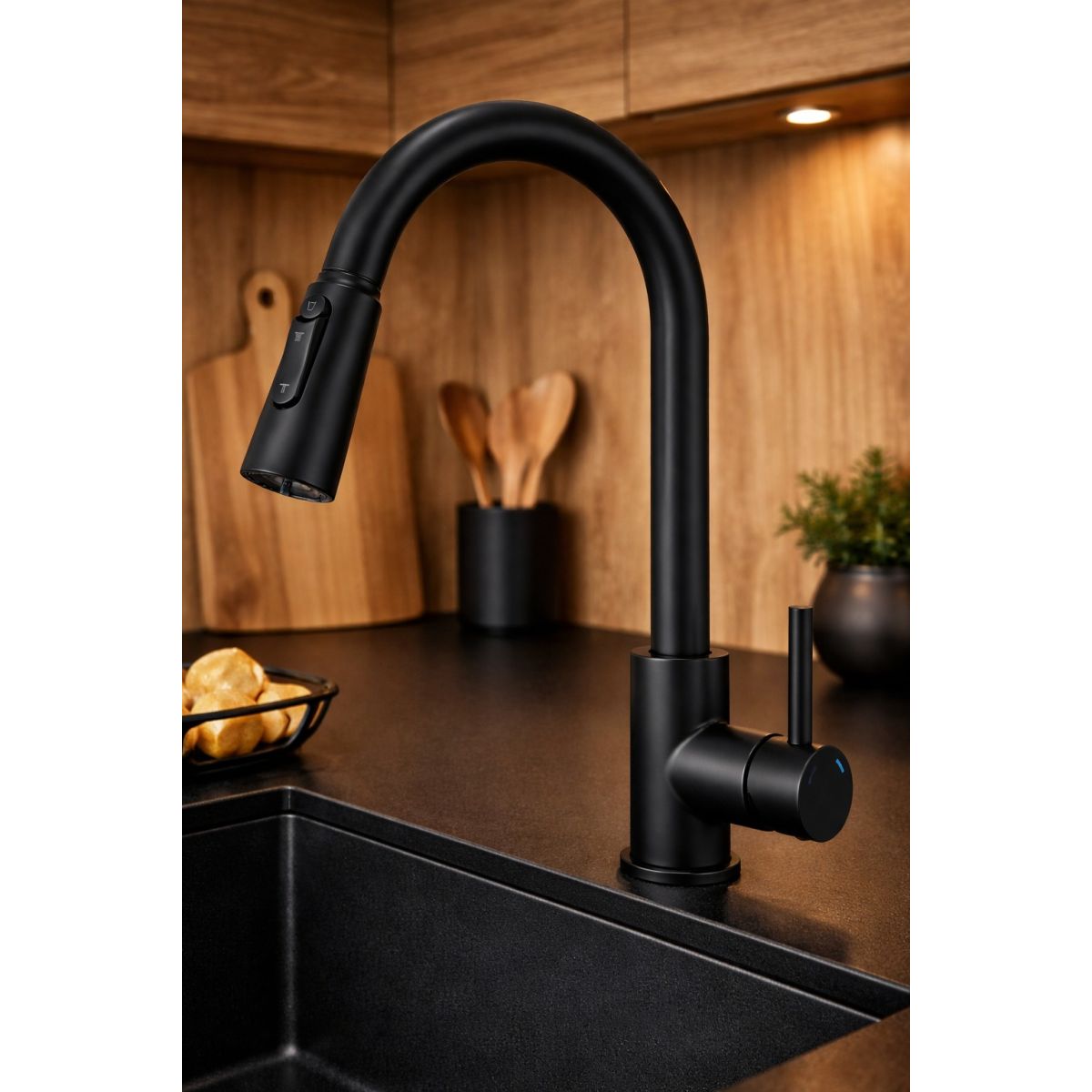 - Hochwertige Küchenarmatur aus Stahl, die für moderne Innenräume und täglichen Bedienkomfort entwickelt wurde. Sie verbindet elegantes Design mit fortschrittlichen Funktionen, die die Arbeit in der Küche erheblich erleichtern.