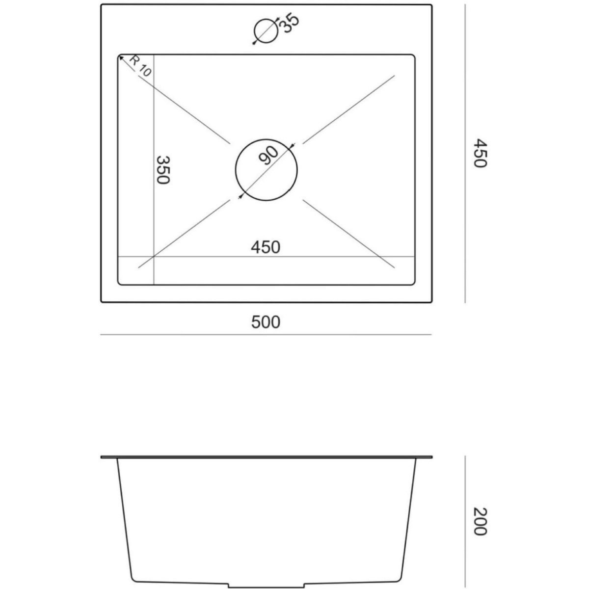 Ruvetti Look Stahlspüle 50x45 cm stahl 5003L_BS50_W