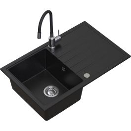 - Ein modernes Küchenset, das Funktionalität, Komfort und zeitlose Ästhetik vereint. Die Spüle mit ihrem geräumigen, tiefen Becken bietet Komfort auch beim Spülen großer Töpfe, und der lange, praktische Abtropfbereich vergrößert den Arbeitsbereich erheblich und erleichtert die täglichen Arbeiten in der Küche. Der verwendete automatische Save-Space-Siphon ermöglicht eine maximale Nutzung des Platzes im Schrank unter der Spüle, und der elegante Abflussregler unterstreicht den modernen Charakter des Sets und erhöht den Bedienkomfort. Abgerundet wird das Ganze durch eine solide Stahlarmatur mit flexiblem Auslauf, die ein freies Manövrieren des Wasserstrahls und ein einfaches Befüllen von Geschirr ermöglicht. Die einfache Montage auf einer Mutter macht die Installation schnell und problemlos.