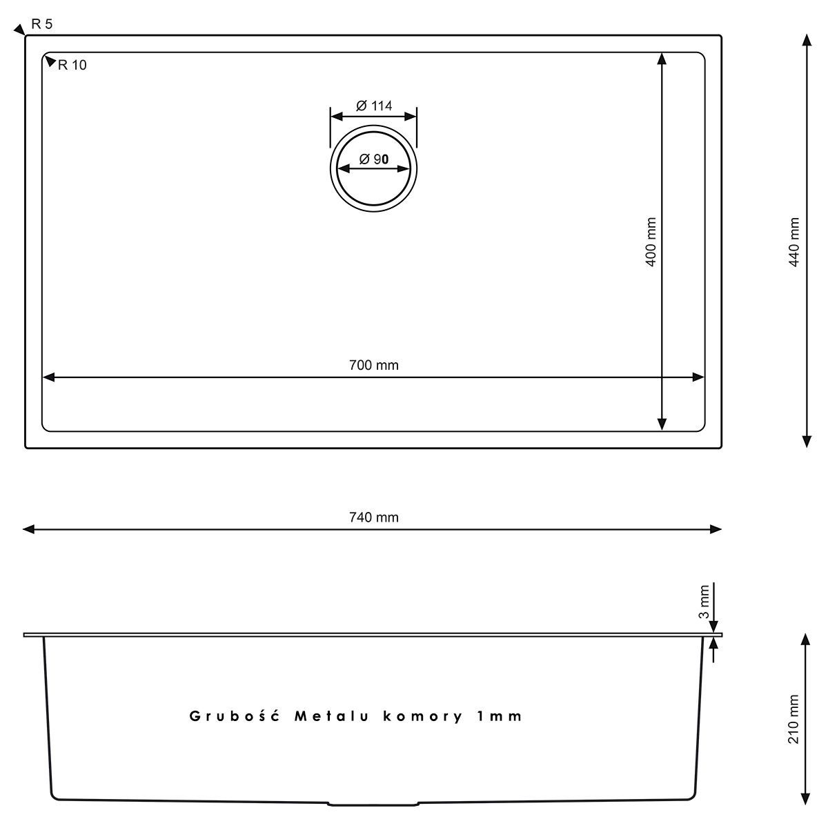 - Die minimalistische Form mit geraden Linien und einer tiefen Kammer verleiht dem Innenraum einen luxuriösen Charakter, während die Montage unter der Arbeitsplatte für eine perfekt glatte Arbeitsfläche und eine außergewöhnliche Pflegeleichtigkeit sorgt. Durch das Fehlen sichtbarer Kanten wirkt die Küche aufgeräumt und modern, und die tägliche Reinigung wird schneller und bequemer.