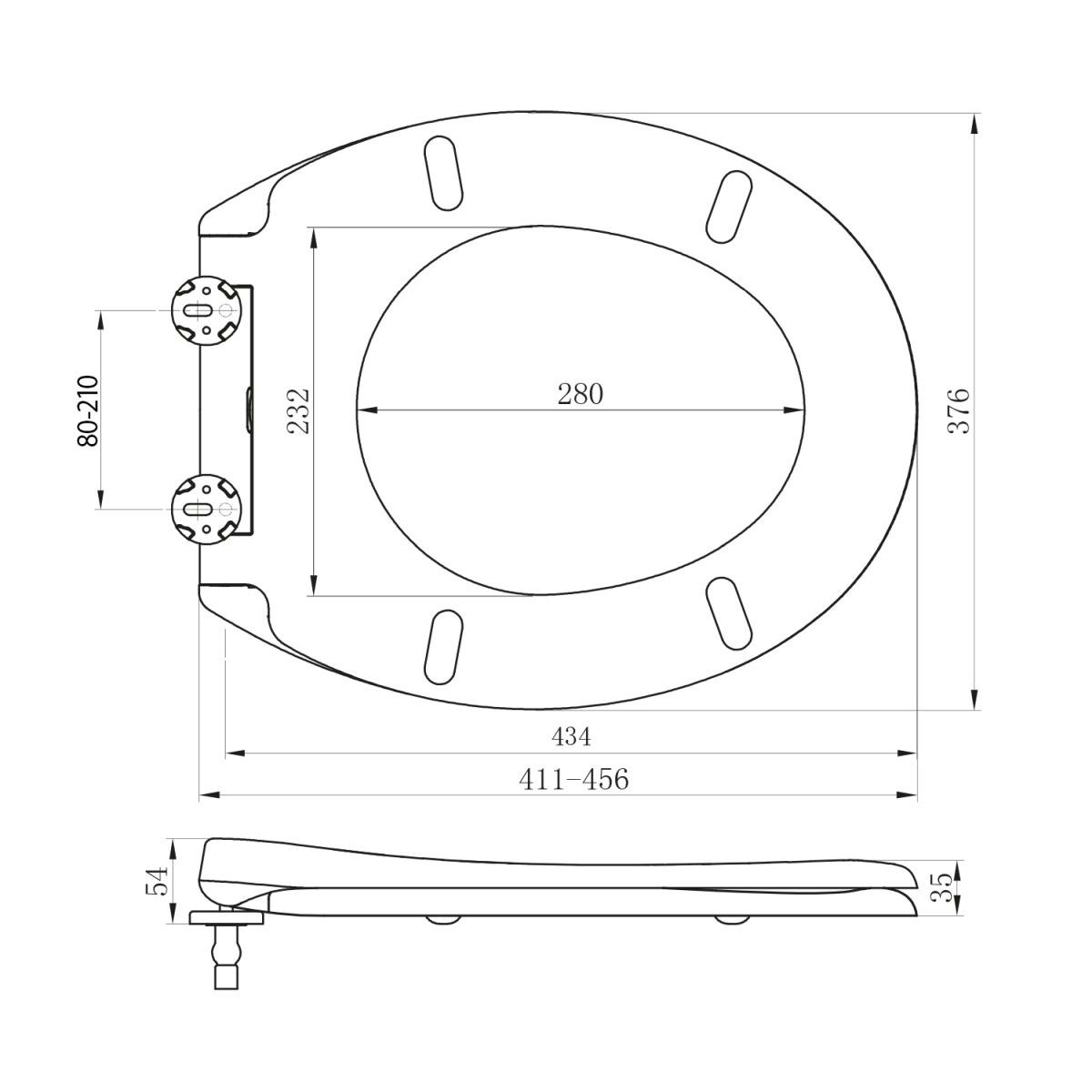Verstellbare Halterungen aus Edelstahl ermöglichen die Anpassung des Sitzes an die Abmessungen der Toilettenschüssel.