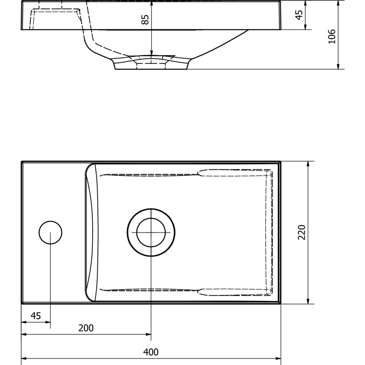 Sapho Agos Waschbecken 40x22 cm rechteckig Möbel weiß AS400