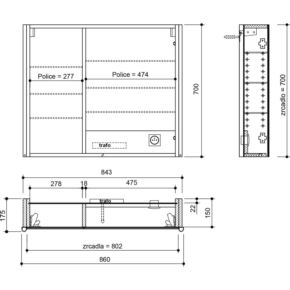 Sapho Alix Kabinett 86x17.5x70 cm Spiegelschrank holz AX186-0016