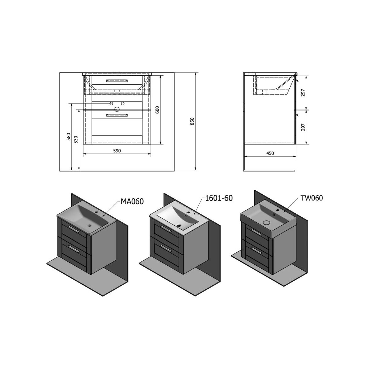 Sapho Amia Kabinett 60x45x60 cm Unterschrank hängend eiche AM060-1919