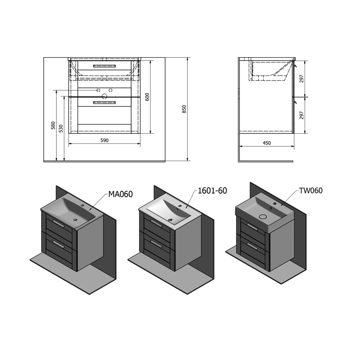 Sapho Amia Kabinett 60x45x60 cm Unterschrank hängend eiche AM060-2020