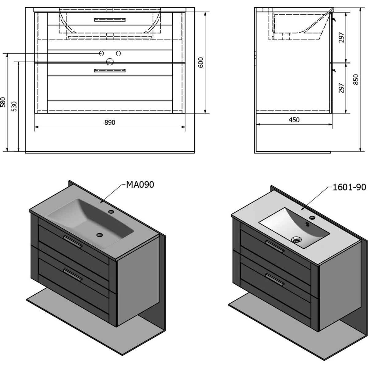 Sapho Amia Kabinett 89x45x60 cm Unterschrank hängend eiche-holz AM090-1919
