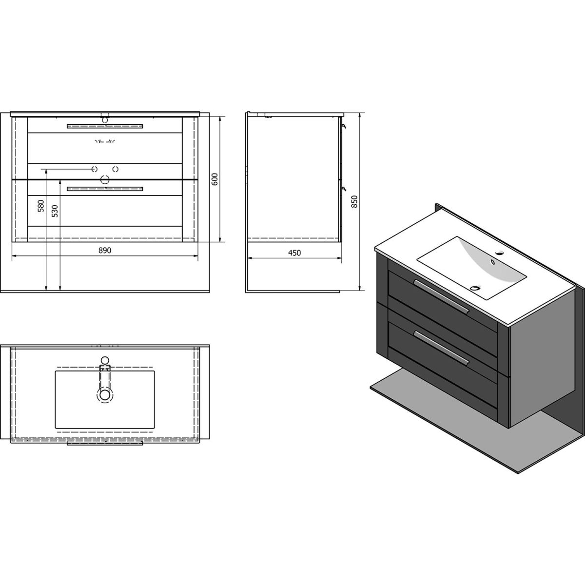Sapho Amia Kabinett 89x45x60 cm Unterschrank hängend eiche-holz AM090-2020