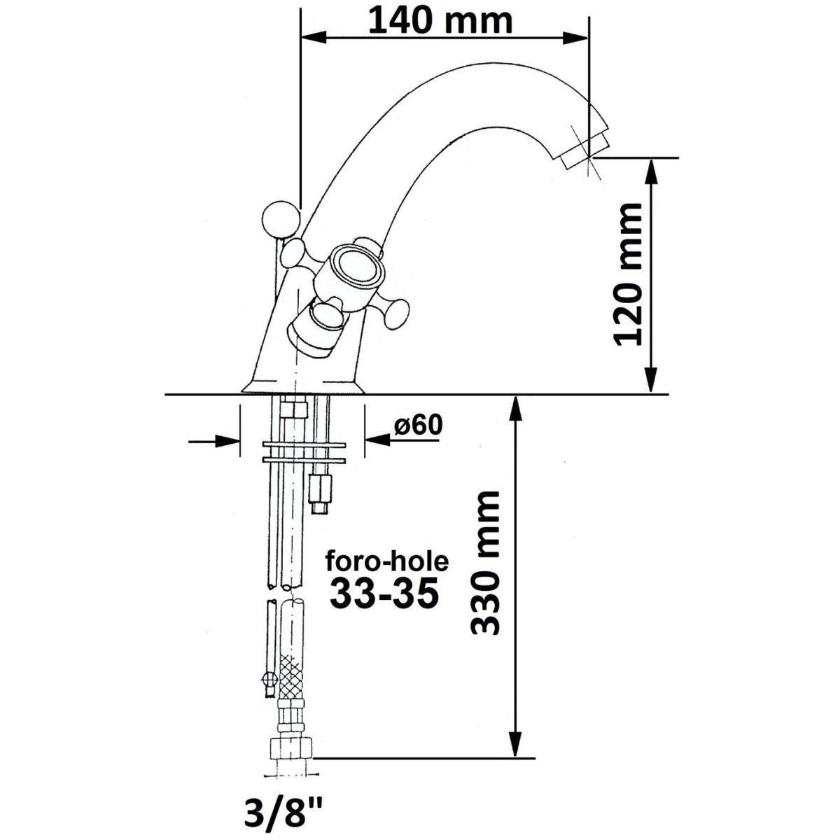 - Höhe des Auslaufs zum Perlator: 12 cm