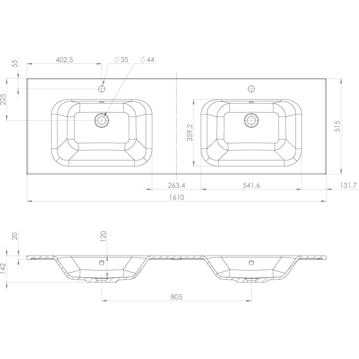 Sapho Areca Waschbecken 161x51.5 cm rechteckig Klassisch-Möbel weiß AC161