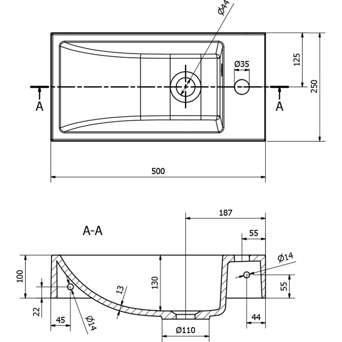 Sapho Ariana Waschbecken 50x25 cm rechteckig Klassisch-Aufsatzwaschbecken weiß SM016