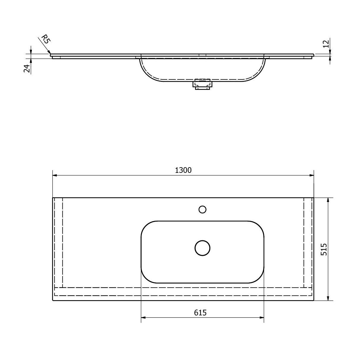 Sapho Aruba Waschbecken 130x51.5 cm rechteckig Möbel weiß AR130-B1R