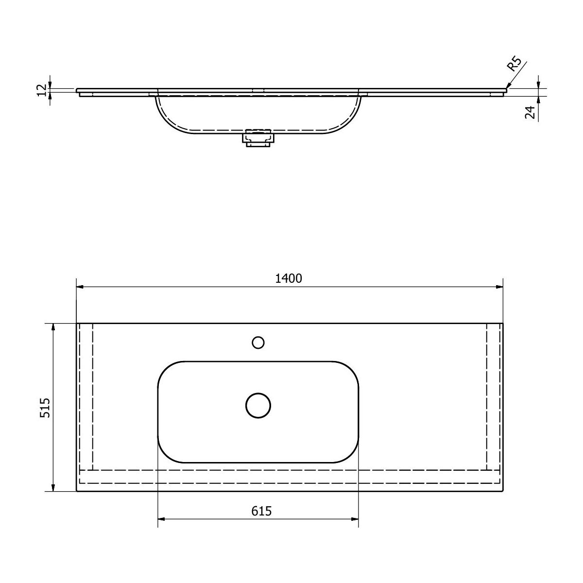 Sapho Aruba Waschbecken 140x51.5 cm rechteckig Möbel weiß AR140-B1L