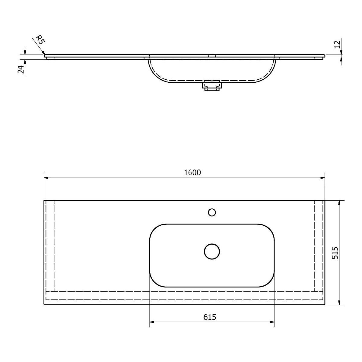 Sapho Aruba Waschbecken 160x51.5 cm rechteckig Möbel weiß AR160-B1R