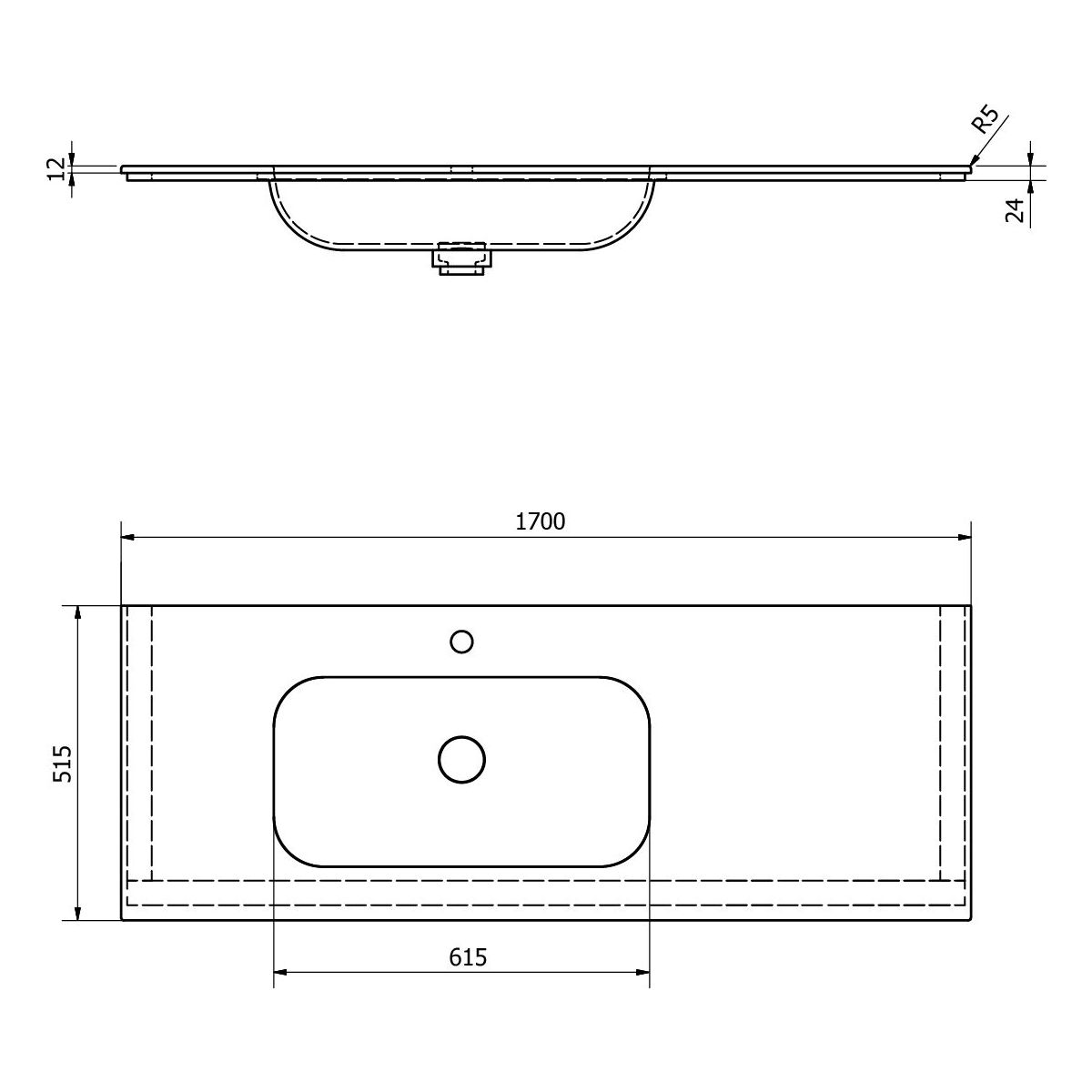 Sapho Aruba Waschbecken 170x51.5 cm rechteckig Möbel weiß AR170-B1L
