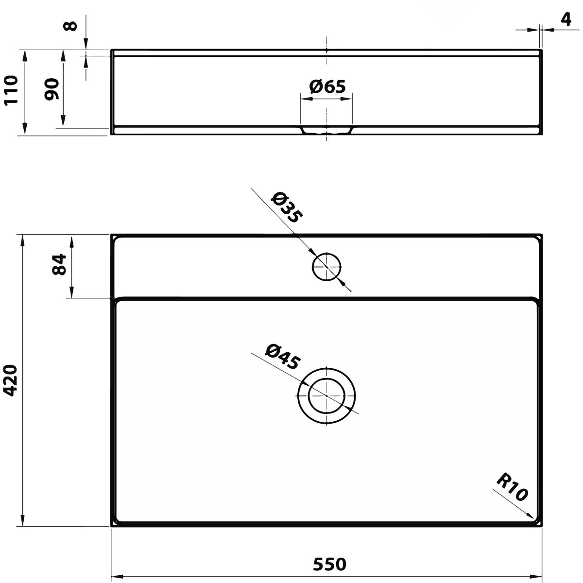 Sapho Aurum Waschbecken 55x42 cm rechteckig Aufsatzwaschbecken AU302