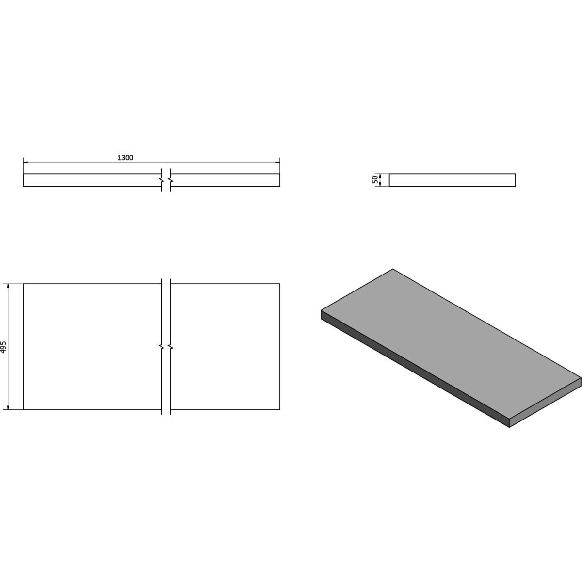 Sapho Avice Arbeitsplatte 130x49.5 cm graphit-grau AV137
